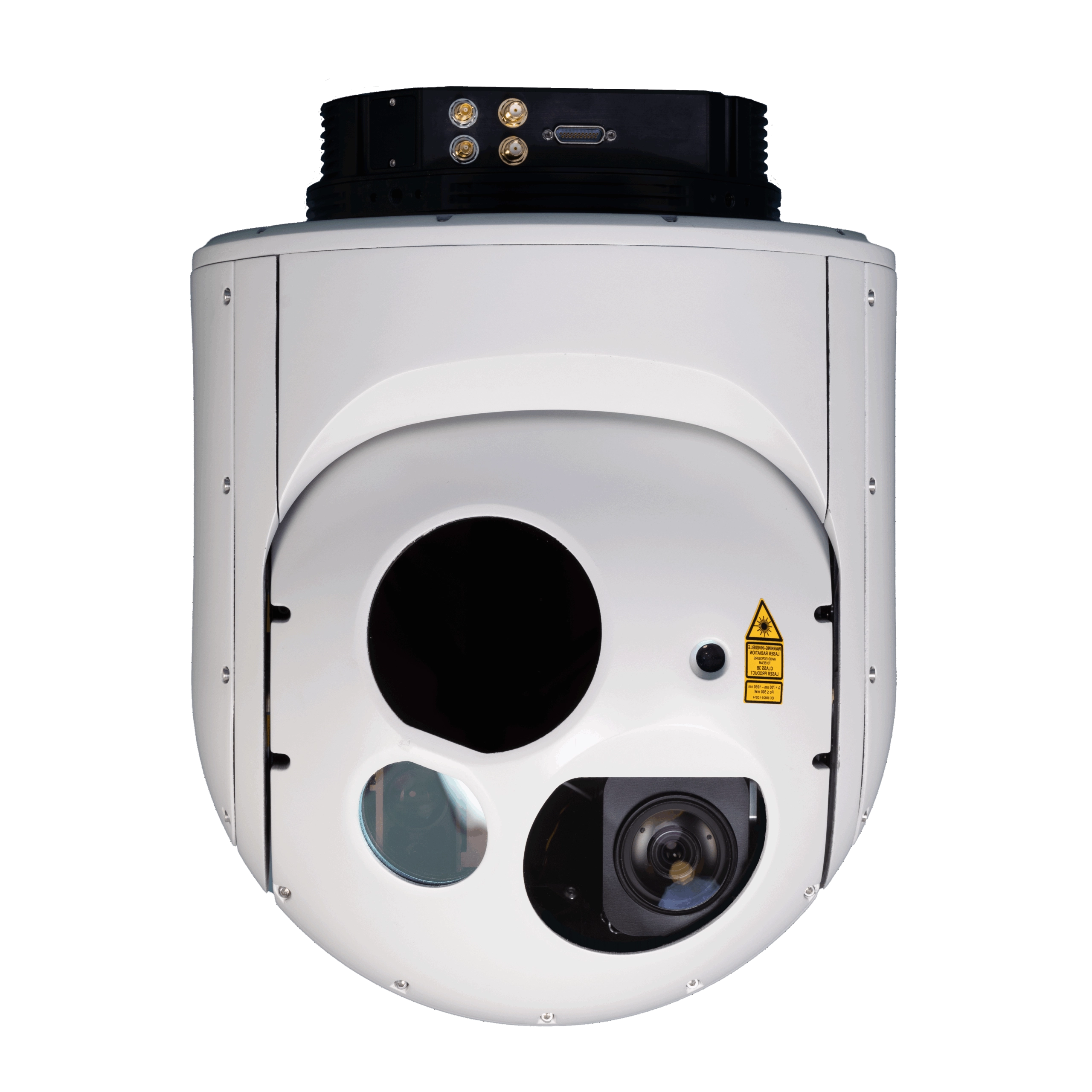 Les caractéristiquesThe Milvus 25HD weighs 6.5 kg. It combines a Full HD day camera with x55 optical zoom and a high-definition 1280×1024 MWIR infrared camera with x20 optical zoom. Like the other models in the range, it integrates both a laser rangefinder (LRF) and a laser pointer (LP), but its superior IR resolution makes it a premium solution for demanding missions.