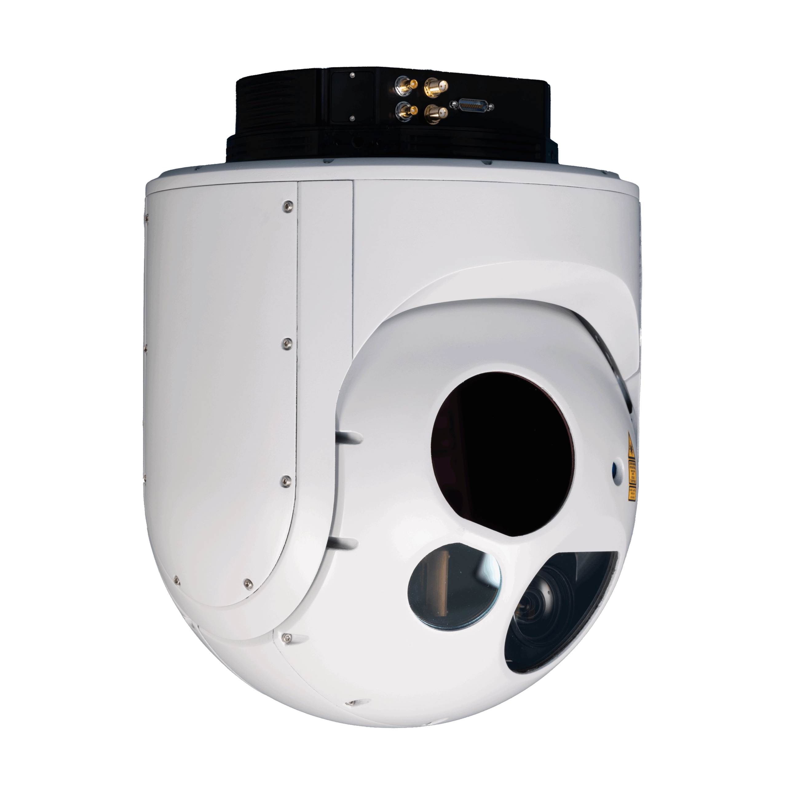 Les caractéristiquesThe Milvus 25D is a gimbal with a 25 cm diameter and a weight of 7 kg. It features a Full HD day camera with x30 optical zoom and a 640×480 MWIR infrared camera with x15 optical zoom. In addition, it integrates a laser rangefinder, a laser pointer, and a >50 mJ STANAG 3733-compliant laser designator. Robust and versatile, it is suited for medium- and long-range surveillance and designation missions.